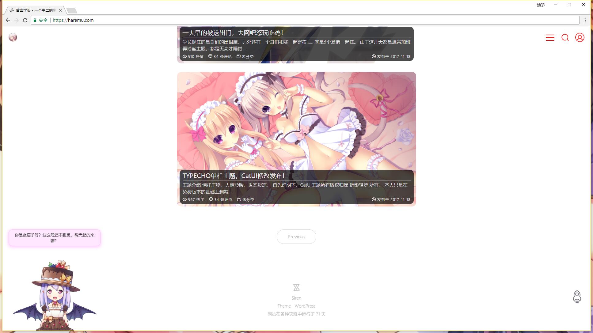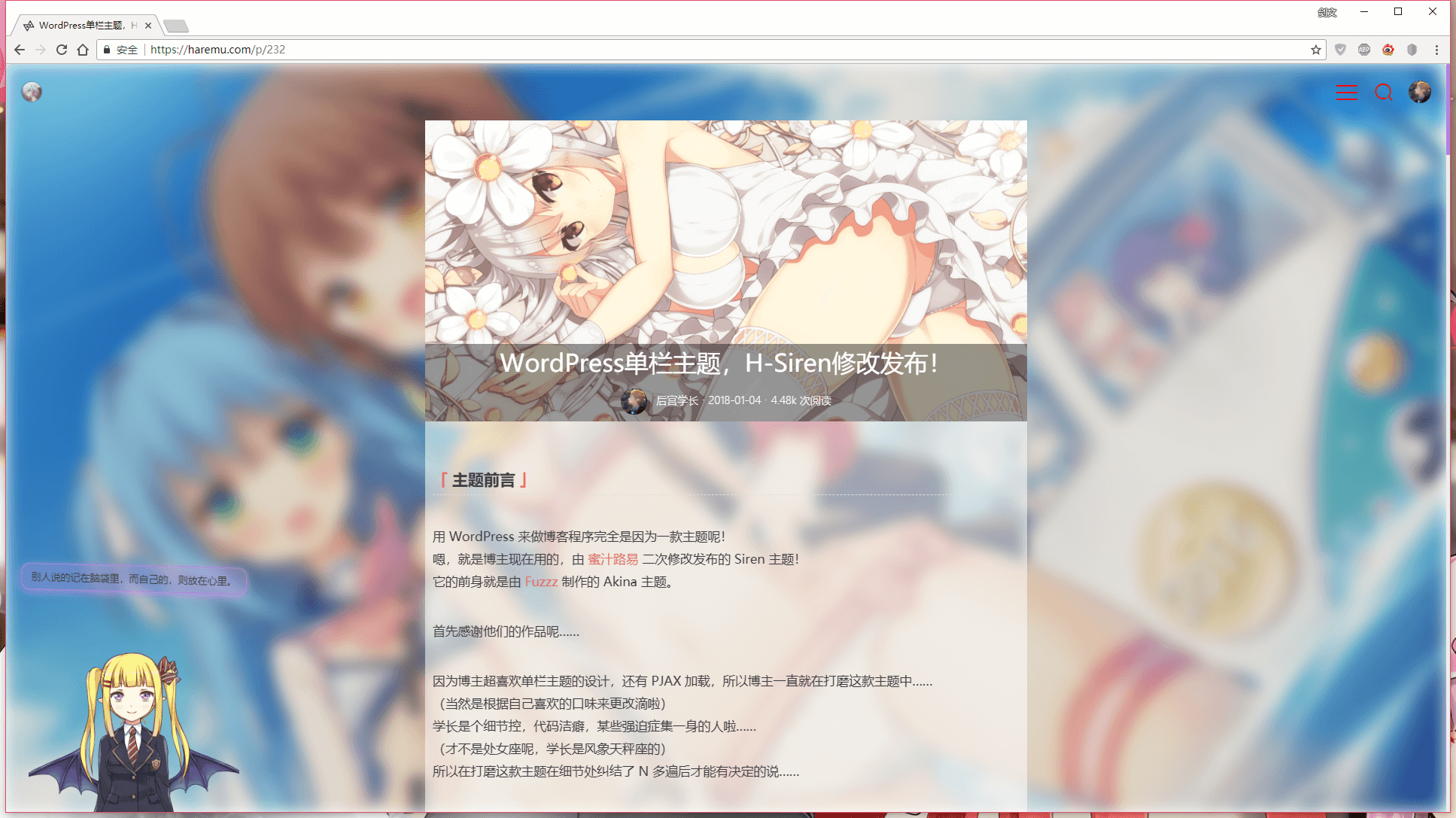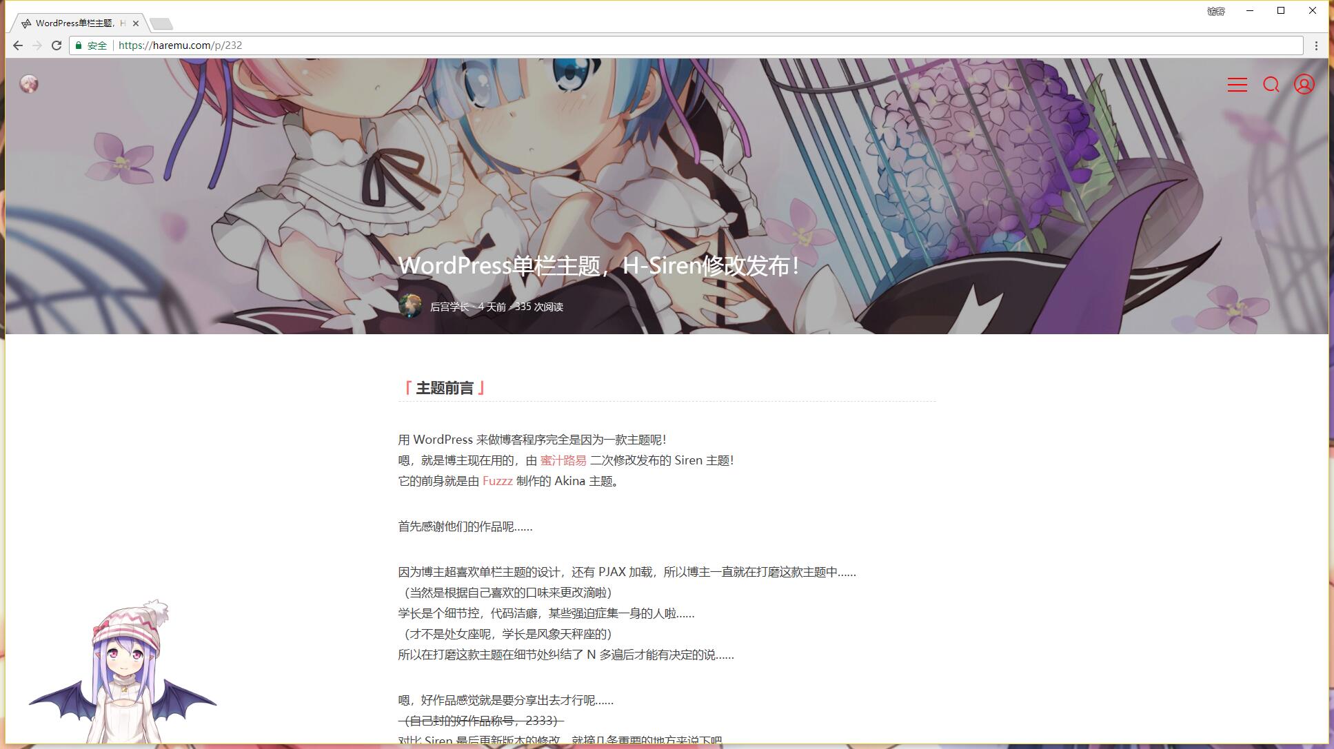 嗯,就是博主现在用的,由 蜜汁路易 二次修改发布的 Siren 主题!