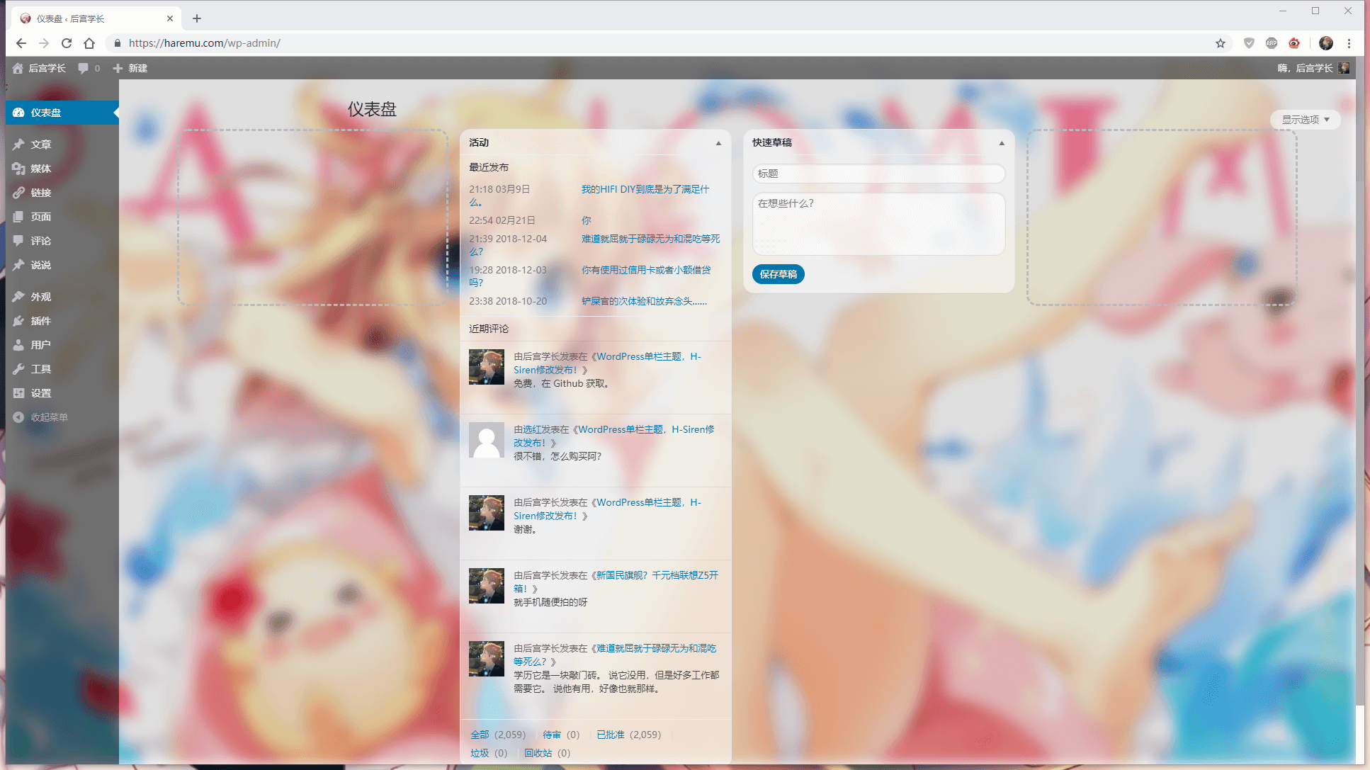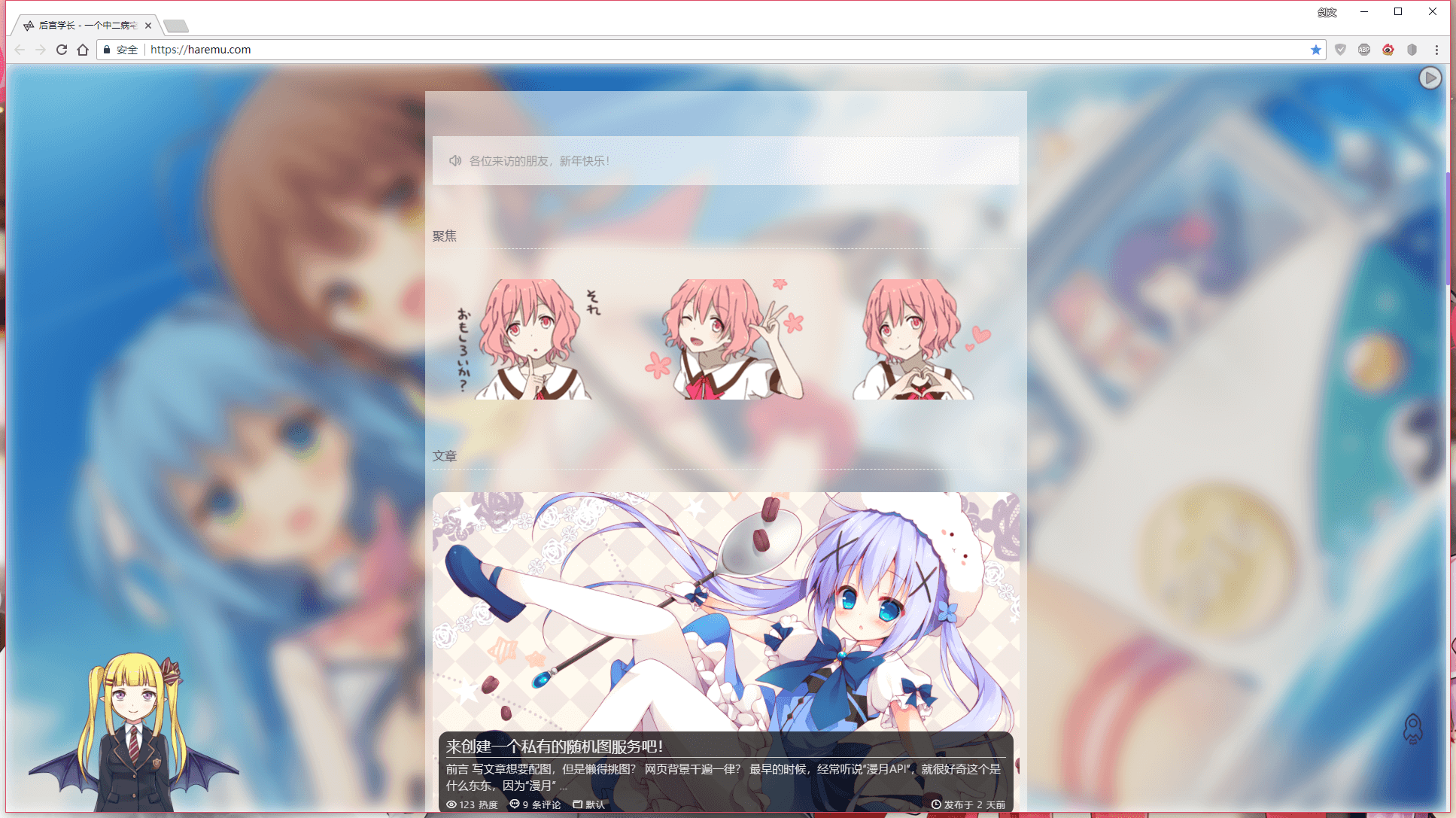 - 任何页面背景头图可以选择使用随机图片API显示,比如 漫月API小歪二次元
