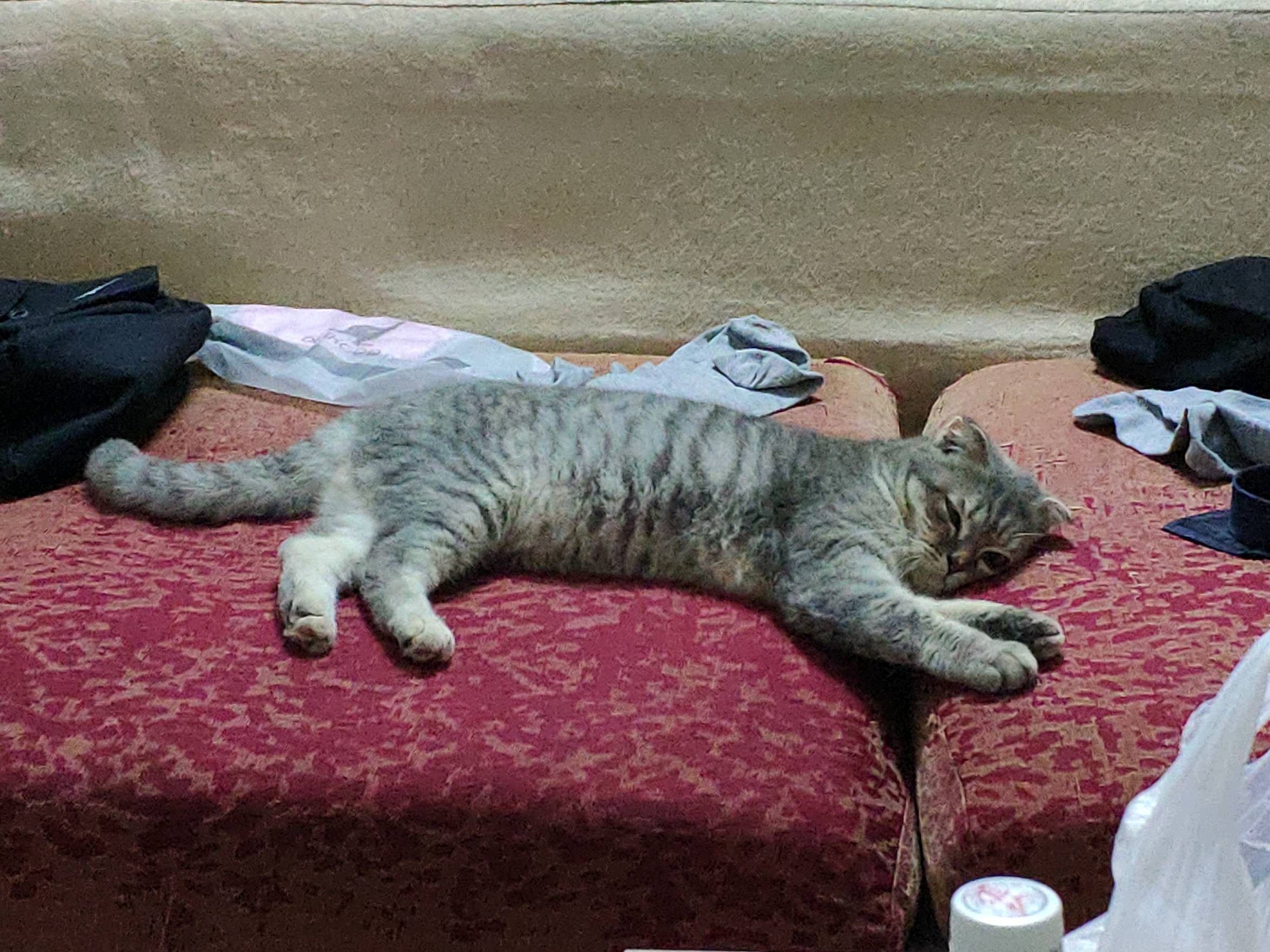 还霸占我的沙发位睡觉,中间的位置,我躺哪都不是……
