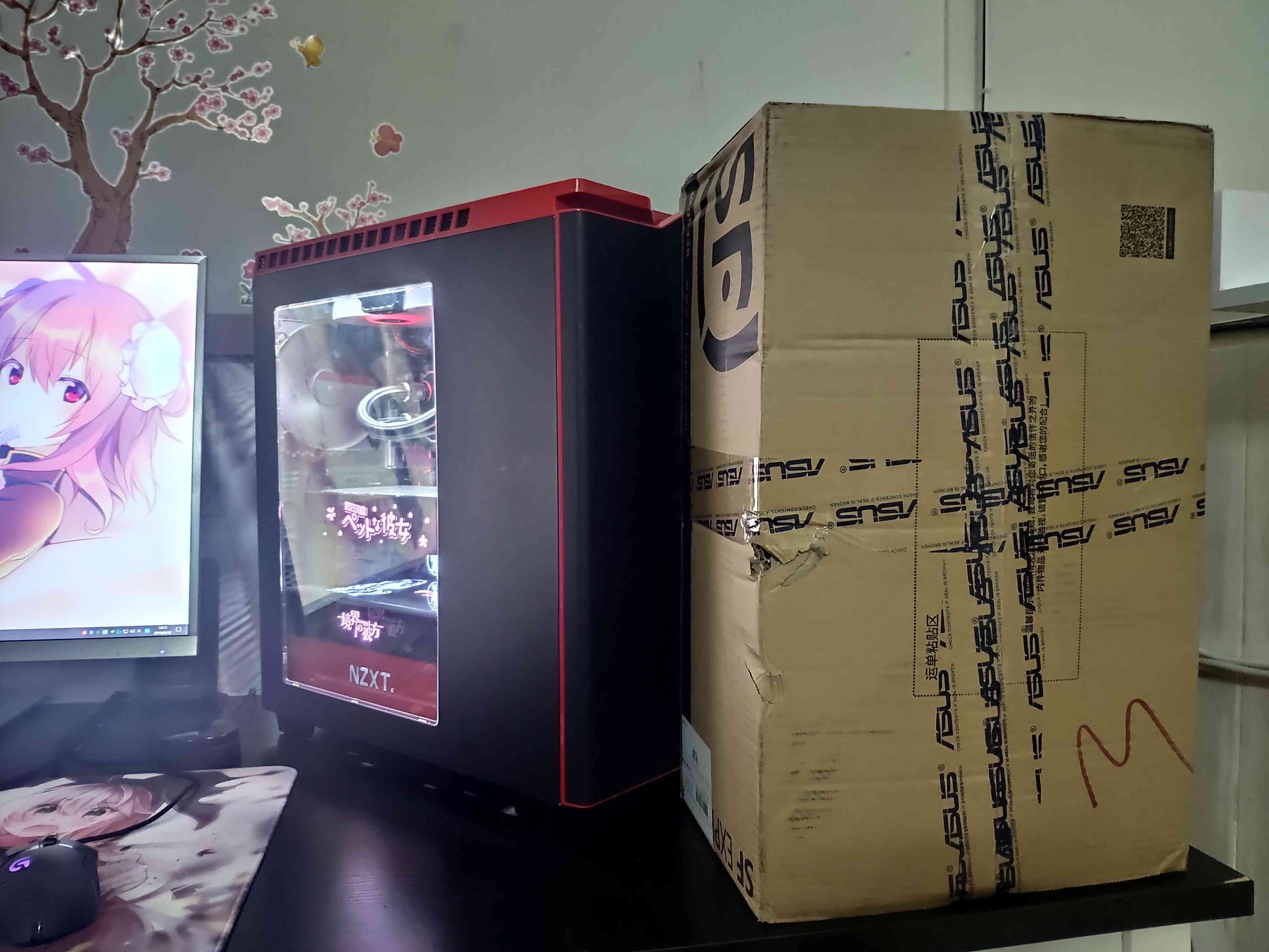你看,箱子跟电脑机箱那么高,有点像登机箱的大小了。