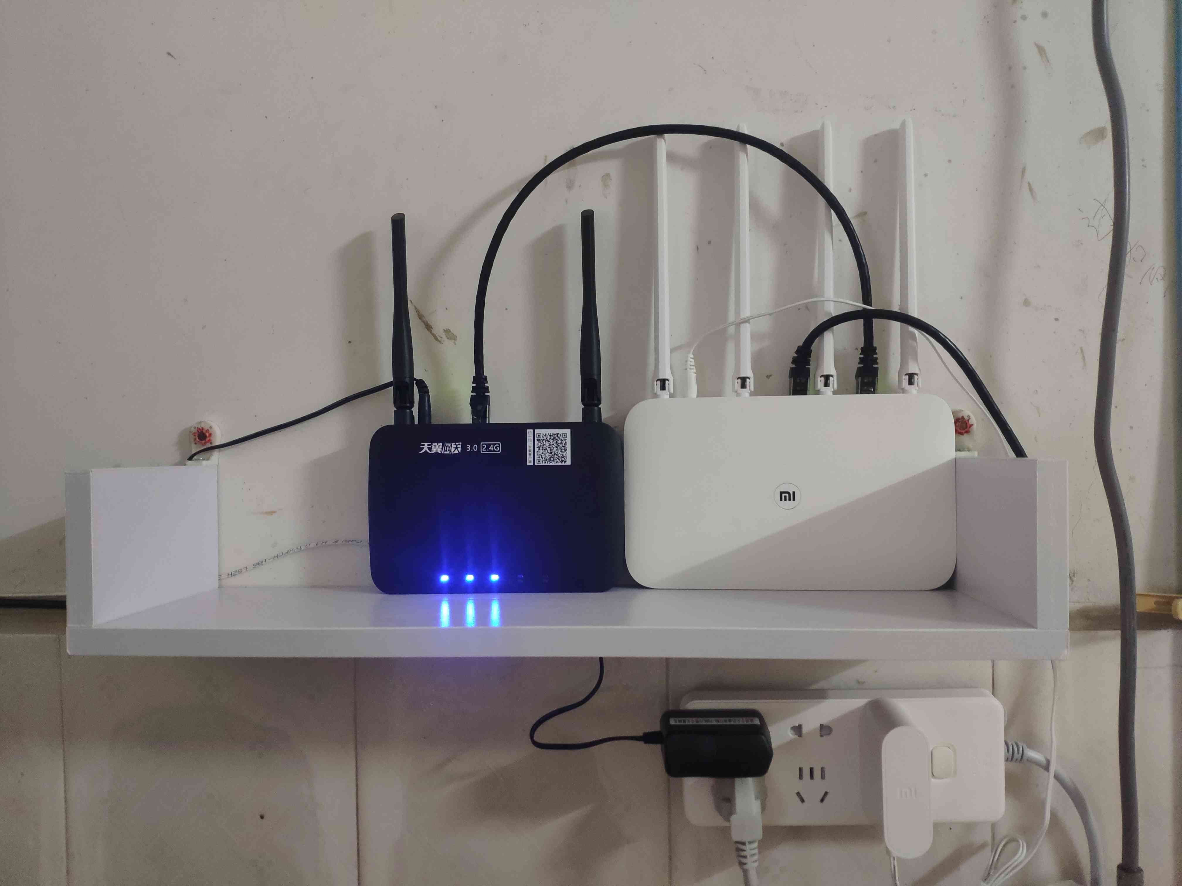 最后也是一样的在他房间安装了个路由器,从我房间走线过去他房间,买的白色扁网线,很好穿过门缝……
