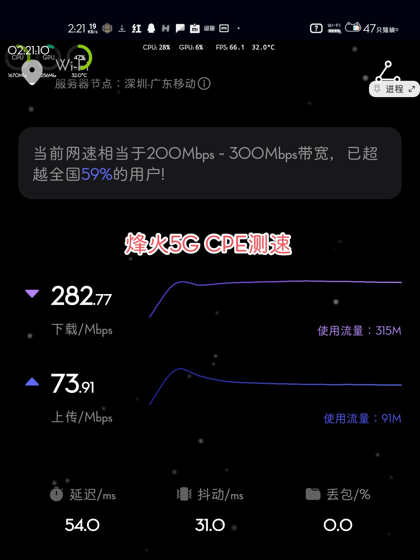 相信大家更关心的是CPE的网速性能,和手机对比起来差别又在哪里?