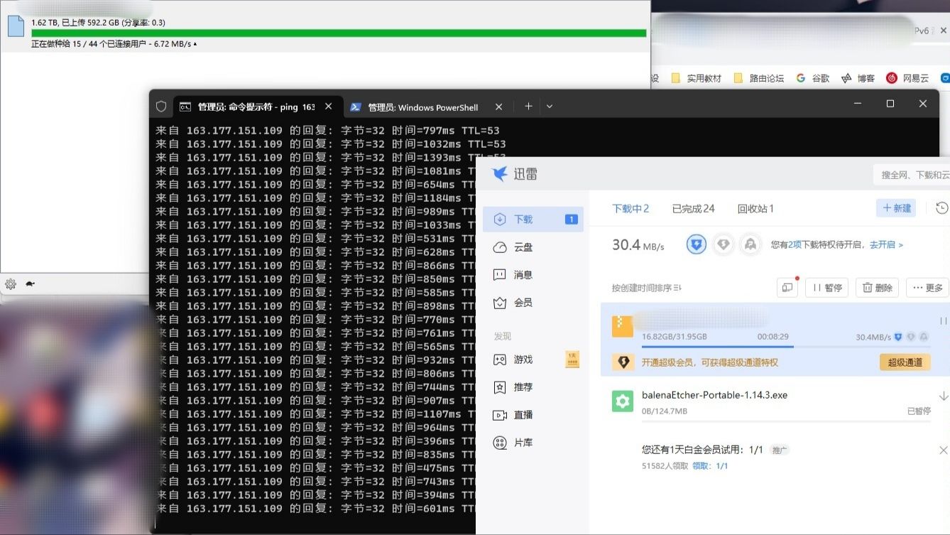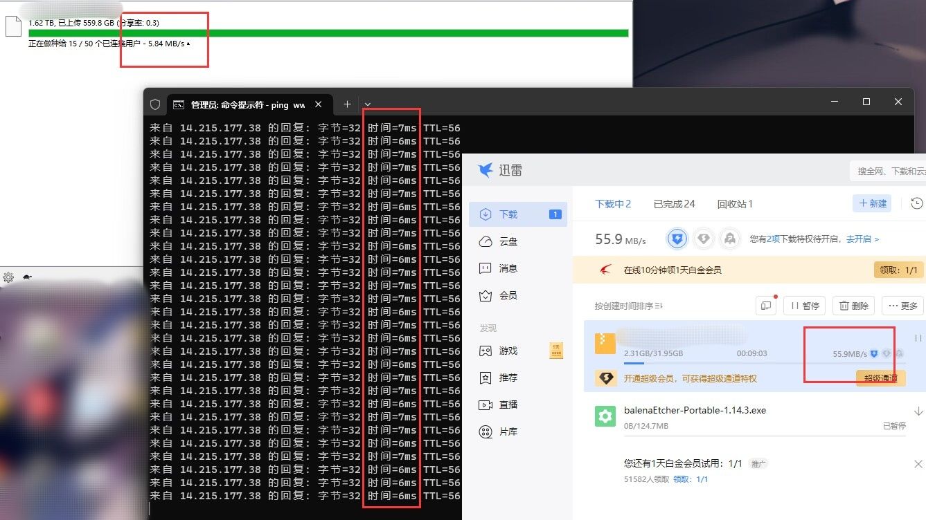 在把下载和上传尽可能同时拉满占用的情况下,CPE的PING延迟明显加剧,不过同时观看视频还是可以的,估计同时玩游戏就难了